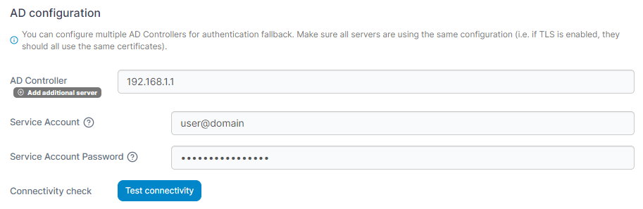 Enter the FQDN or IP address of your domain controller. If you need to add more than one server, click Add additional server.
