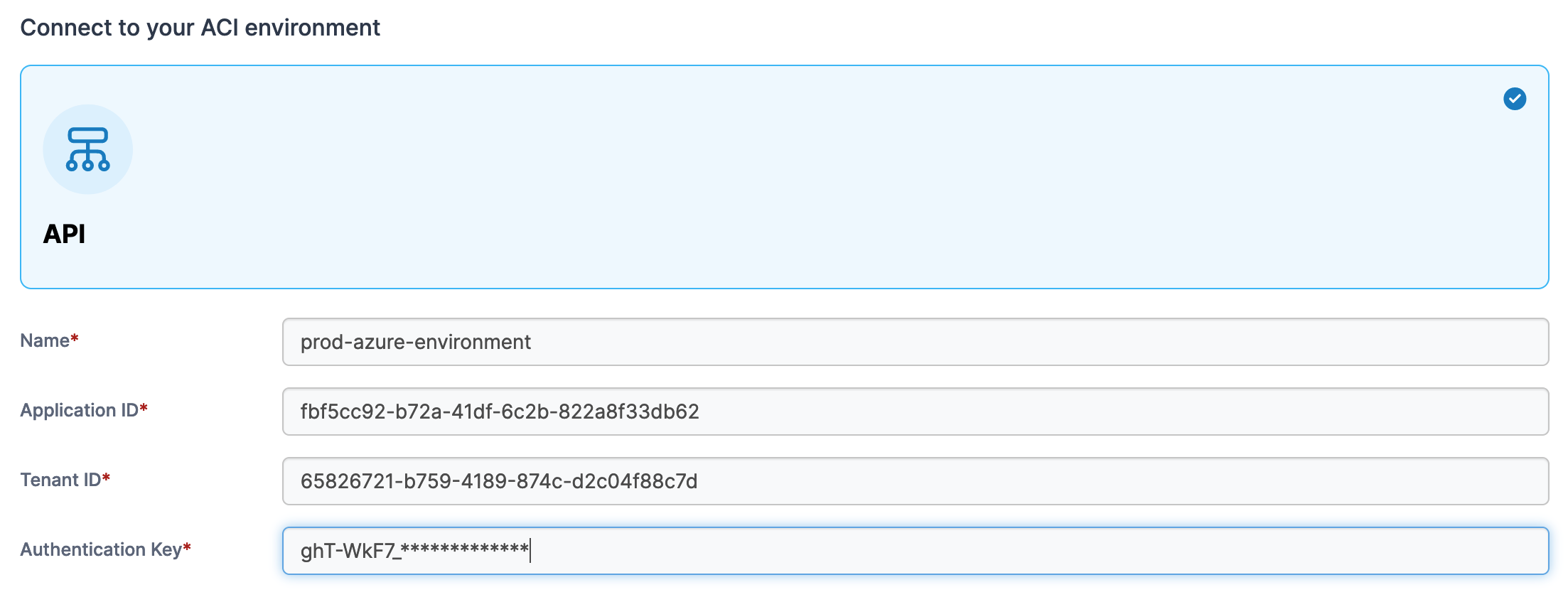 Select **ACI** as your environment type and click **Start Wizard**. Enter the **environment details** using the table below as a guide.