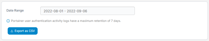 If you want to export logs, filter by date range then click **Export to CSV**.