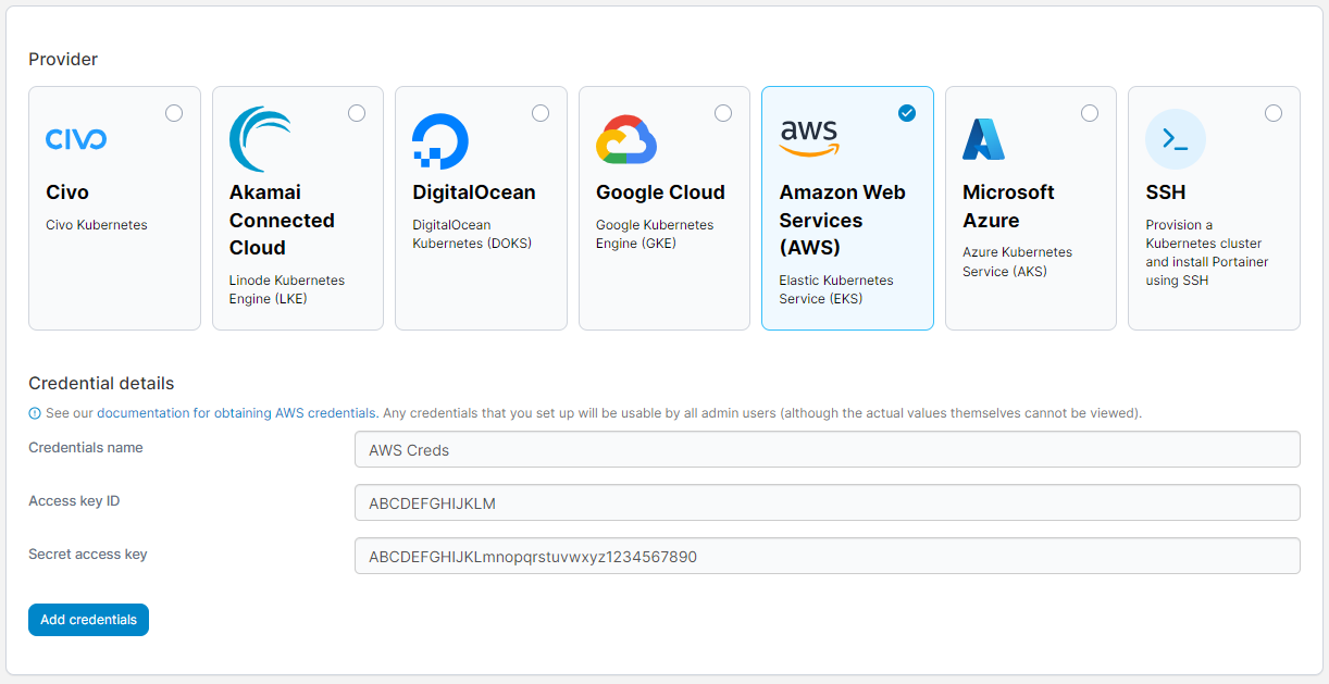 Add AWS credentials
