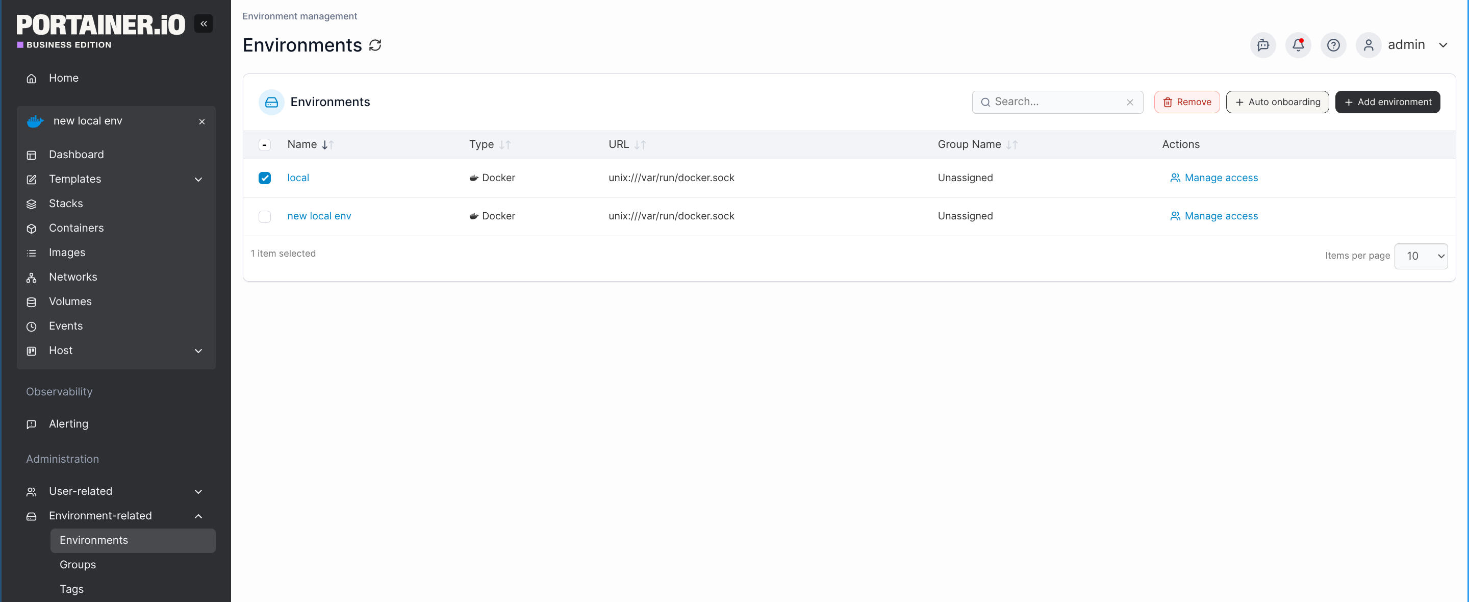 Under Administration, navigate to Environment-related, then to Environments. Selectthe environment you would like to remove and click Remove. The stacks in this environment will become orphaned, and therefore available to be re-associated once you re-add the environment in the next step.