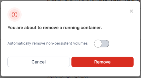 When the confirmation message appears, opt whether or not to automatically remove non-persistent volumes then click Remove.