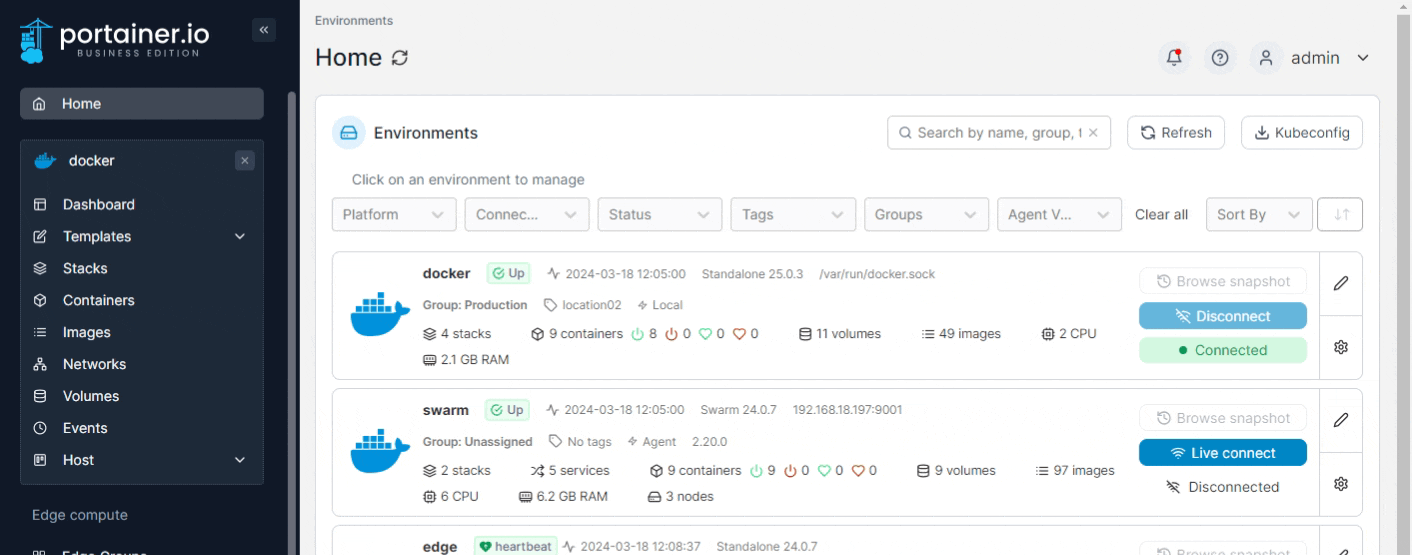 Portainer lets you deploy an entire stack from either a default template or a custom template.