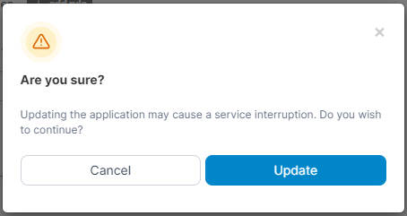 Scroll down to the Persisting data section and click the trash can icon to the right of the volume. Scroll down and click Update application. When the confirmation message appears, click Update.