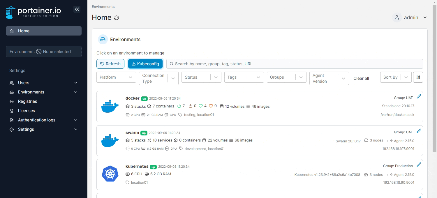 Portainer can act as a proxy for other Kubernetes management tools, providing access to the Kubernetes cluster while still retaining the security and governance that Portainer provides. A user can download their own kubeconfig file and use it with their favorite tool to access the Kubernetes cluster with only the permissions afforded to that user.