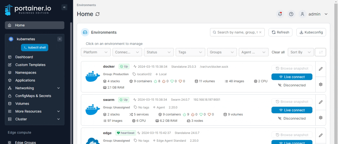The Services page lists the services within your cluster, and provides detail on each service. To view the list of services, expand Networking and select Services from the left hand menu.