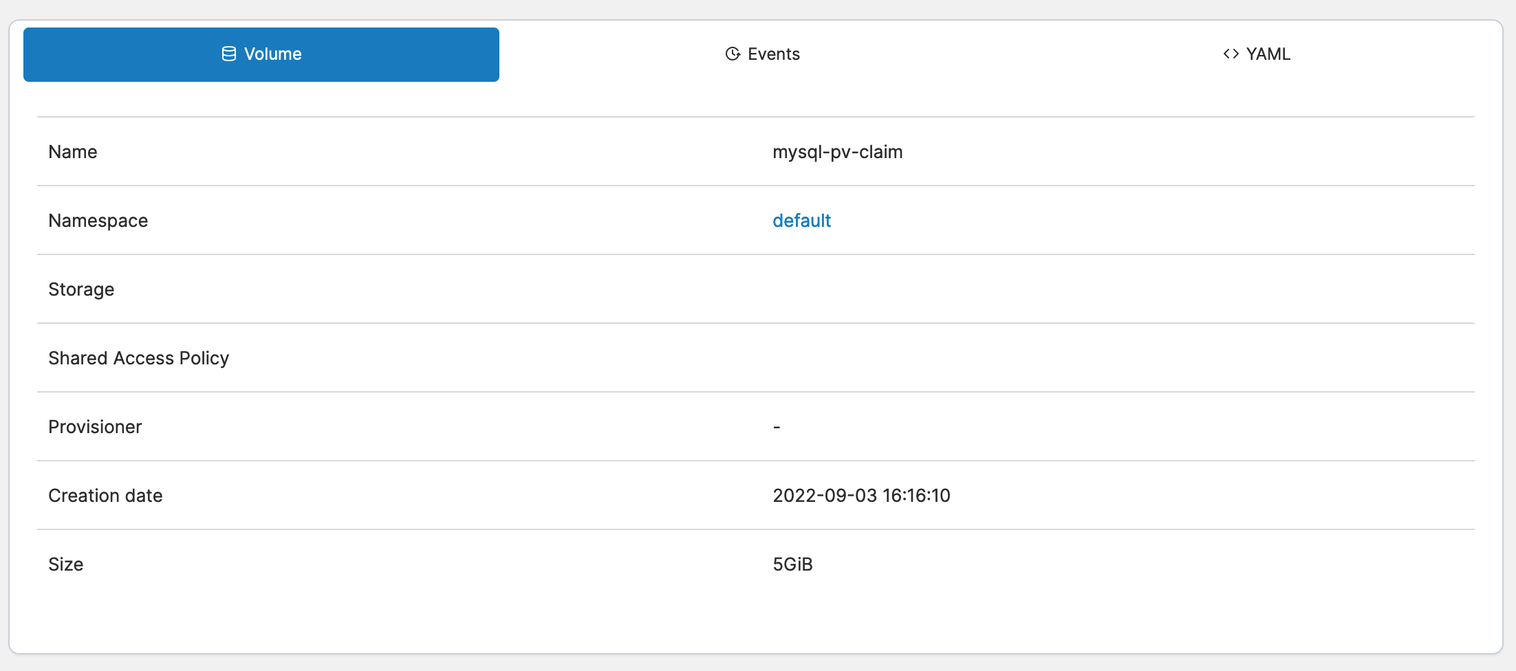 This displays the YAML generated from the volume deployment. Use it to create backups of the configuration.