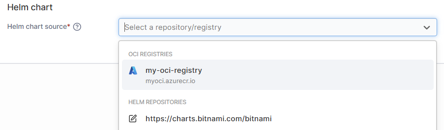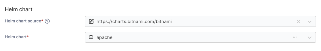 You can now also select chart sources for your deployments, allowing you to easily track where they came from and what changes you have made to your configuration compared to upstream sources.