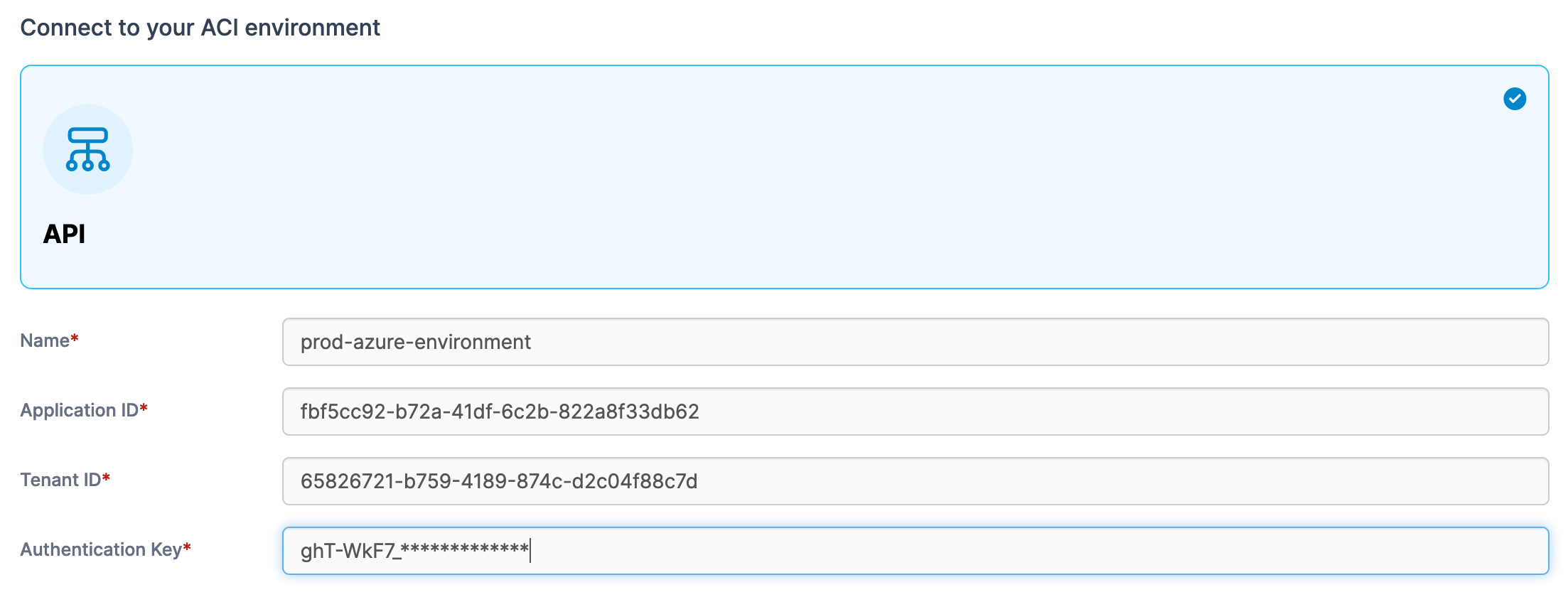 Select ACI as your environment type and click Start Wizard. Enter the environment details using the table below as a guide.