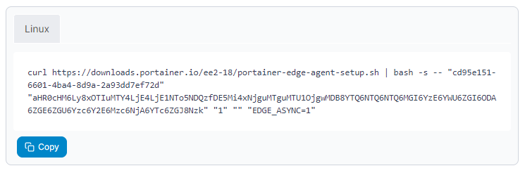 Copy the generated command and run the command on your Edge environment to complete the installation.