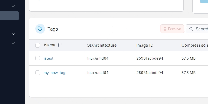 In the Tags section, locate the image you want to retag then click Retag to its right. Enter the new tag for the image then click the tick icon.