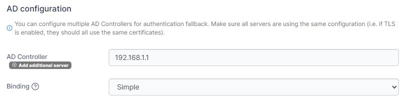 Enter the FQDN or IP address of your domain controller. If you need to add more than one server, click Add additional server.
