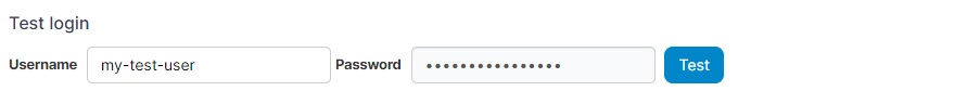 To test your settings are correct and that the right users and groups are configured for access, scroll down to Test login, enter a valid user and password then click Test. If everything is working as expected, a green tick will appear next to the button.