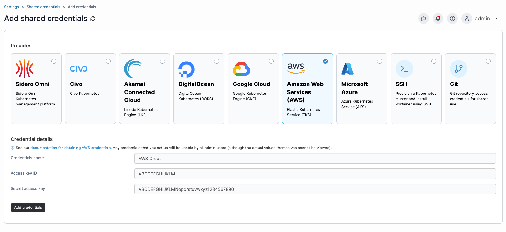 Add AWS credentials