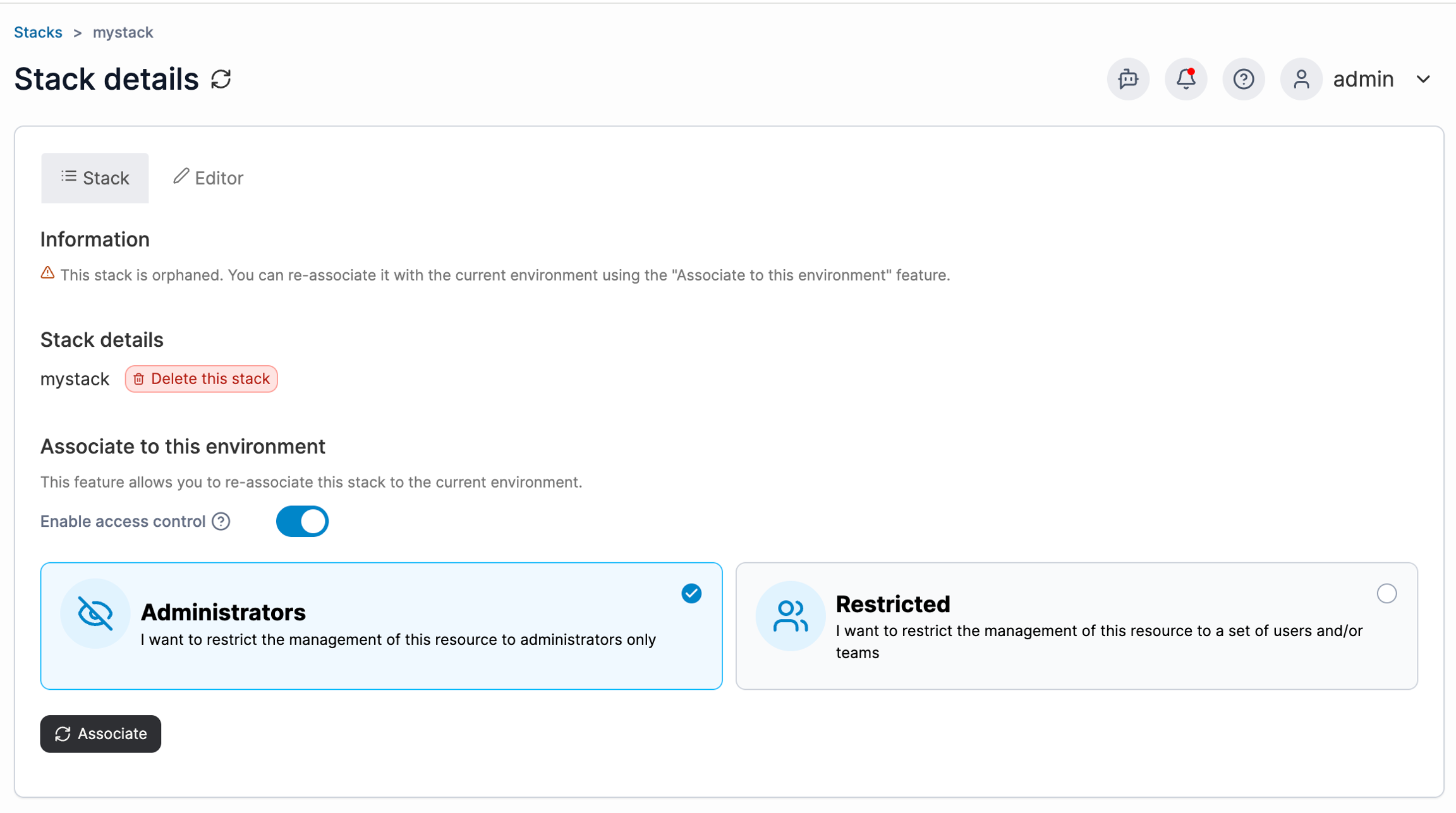 How do I recover orphaned stacks from a previously deleted environment?