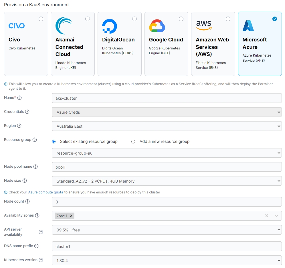 Enter the DNS name prefix to use with your cluster. You will use this to connect to the Kubernetes API when managing containers after creating the cluster.