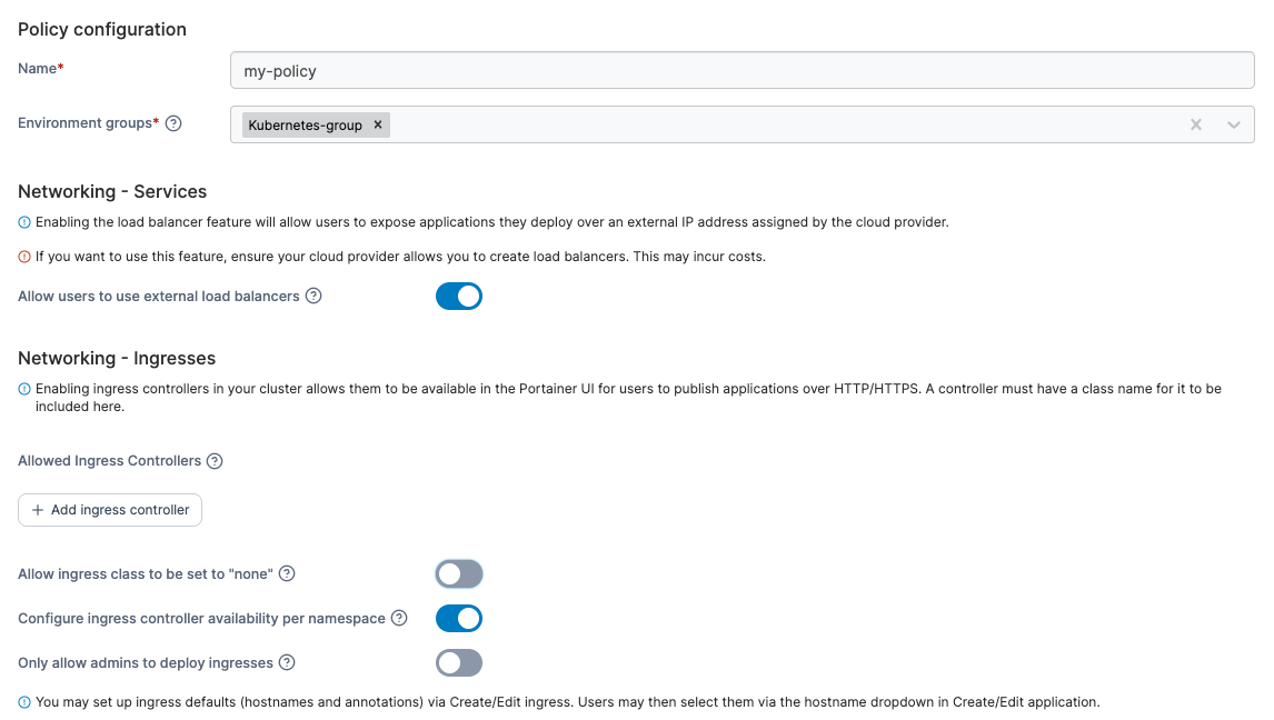Enabling this restricts the deployment of ingresses to cluster administrators only, preventing standard users from creating new ingresses.