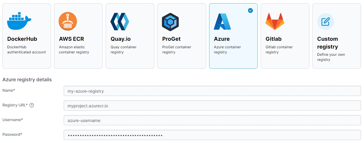 From the menu select Registries then click Add registry and select Azure as the registry provider.
