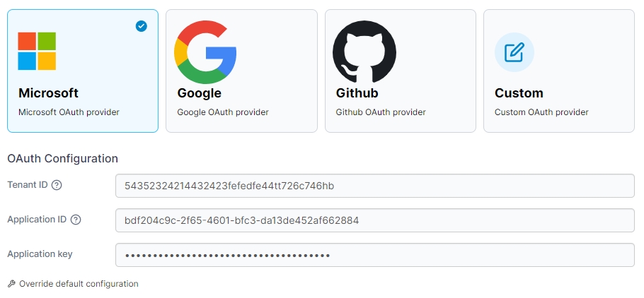 In the next screen, enter the credentials provided by your OAuth provider, using the table below as a guide.