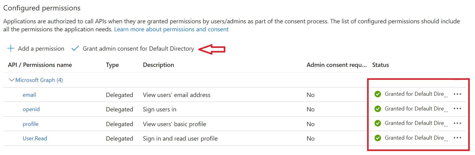 Make sure you Grant admin consent for Directory.