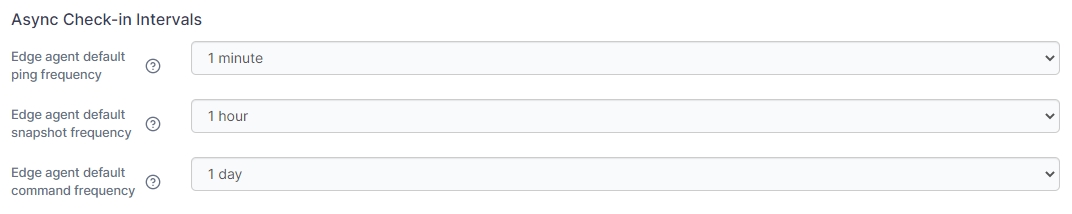 Select how often Edge Agents in async mode check with the Portainer Server instance for pending commands.
