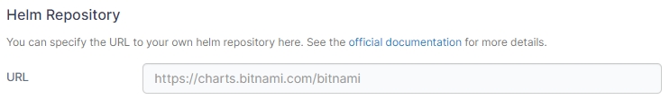 If you wish to use your own Helm repository in place of the Bitnami repository we include by default, you can enter the URL here.