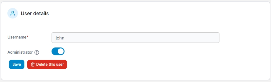 Click the username of the user you want to promote to administrator. Toggle Administrator on then click Save.