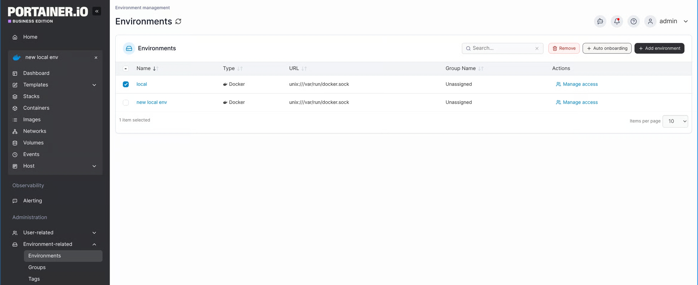 Removing the current environment connection in Portainer