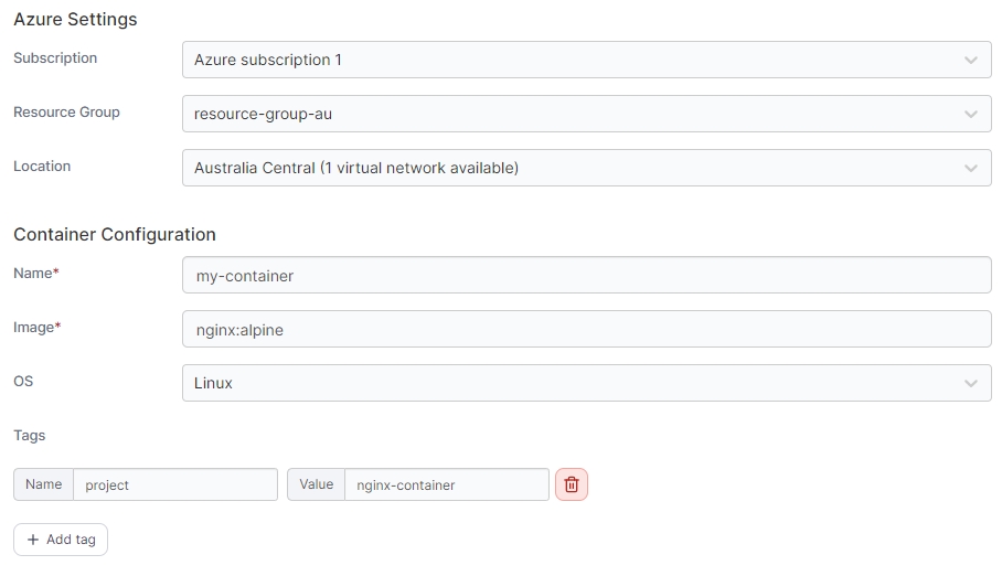 Click Add tag to add a new tag, and provide the Name and Value for each tag as needed. Click the trash icon next to a tag to remove it.