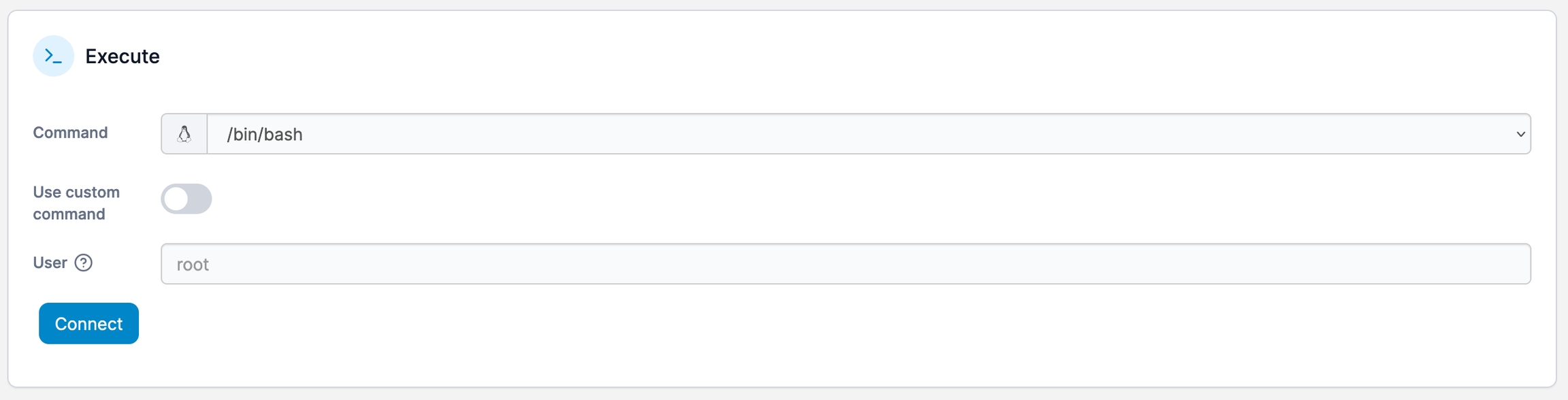 If you need to define a command other than those provided, toggle the Use custom command option on. Once connected, you can run commands in the console the same as any other Linux system.