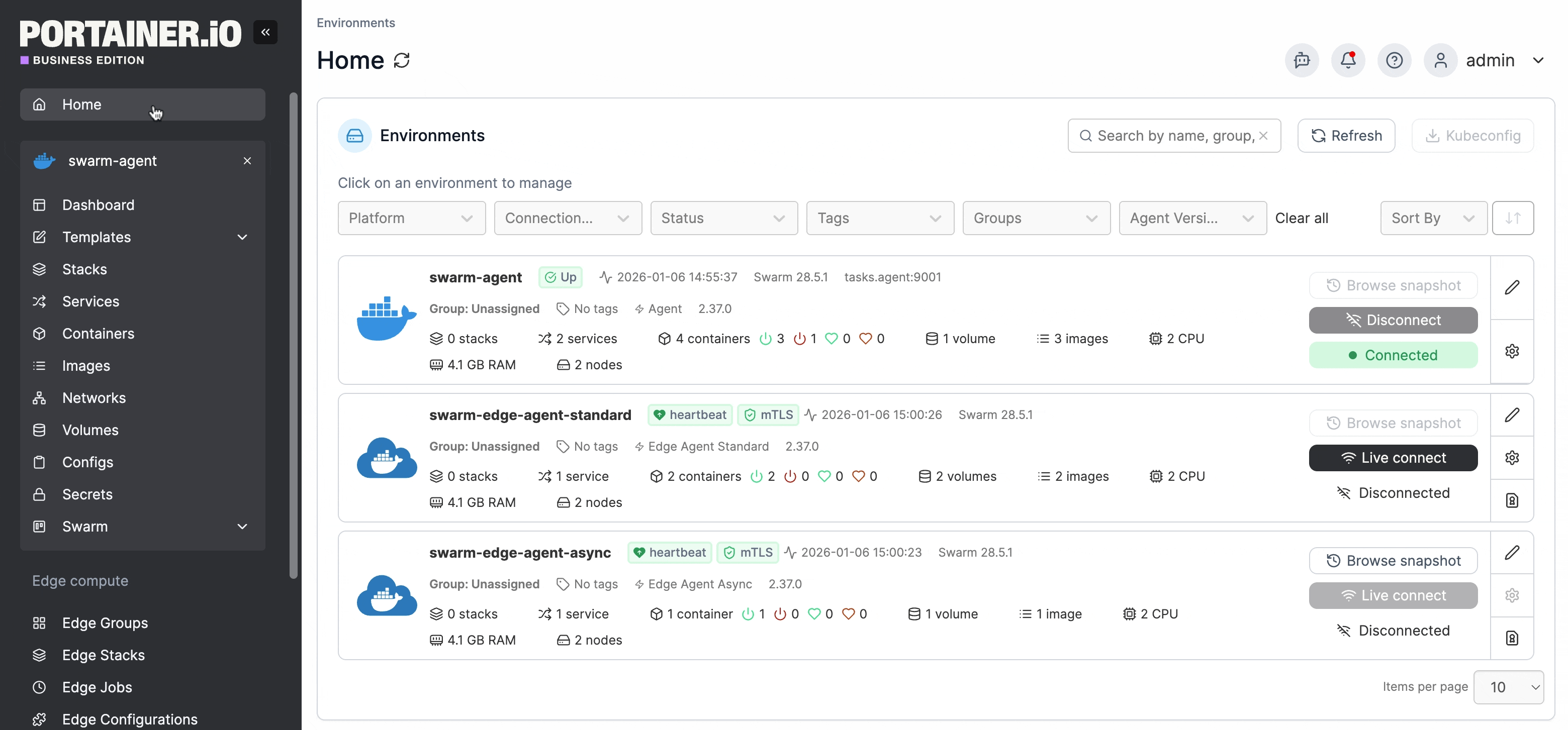 From the menu select **Containers**, select the container then select **Inspect**.