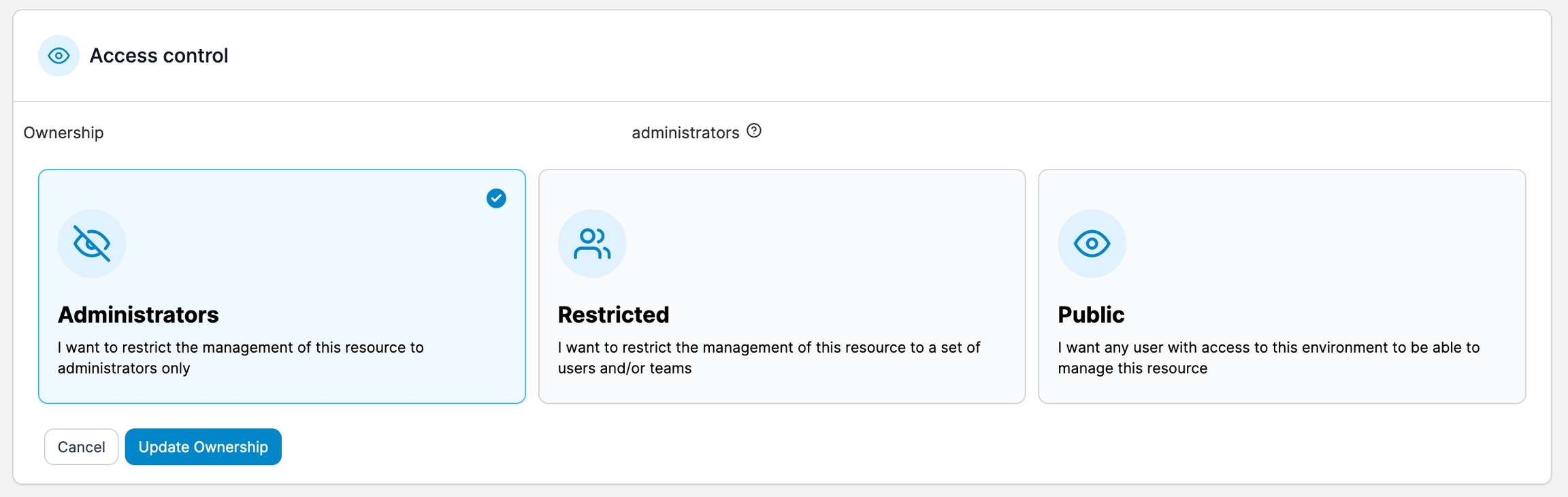 Under the Access control section tick the Change ownership checkbox then select the new ownership type, using the table below as a guide.