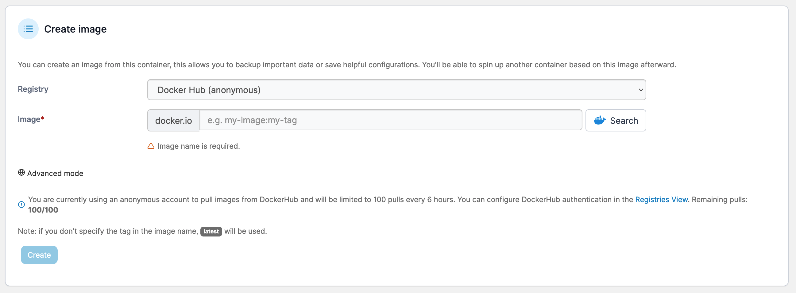 <figure><img src="https://content.gitbook.com/content/MdgxA76kWxcRmwybM8Ft/blobs/q1Mz1XS0sGSLGUkLFhbn/2.15-docker_containers_container_create_image.png" alt=""><figcaption></figcaption></figure>