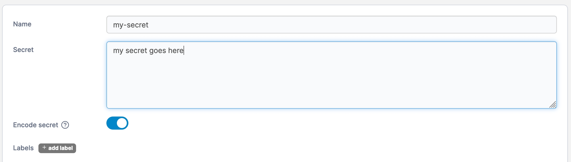 Next, give the secret a descriptive name and write a definition of the secret in the Secret field. Toggle Encode secret on if you want to encode the secret (useful when you use a plain-text password).