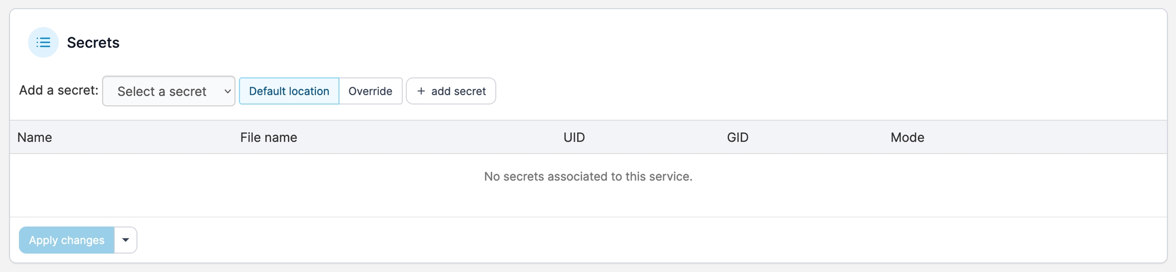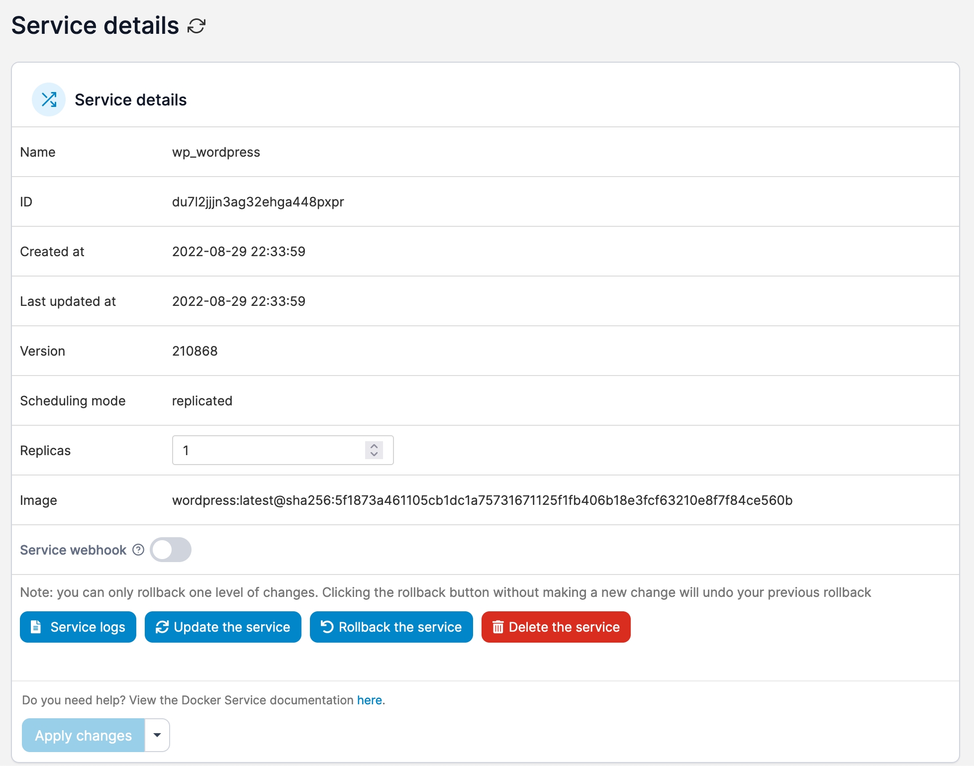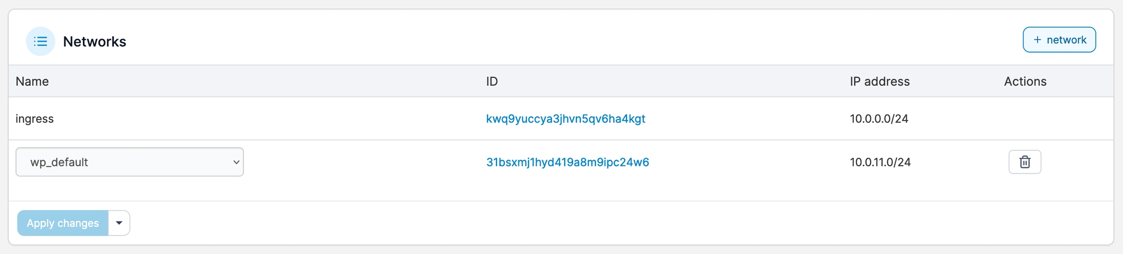 You can define one or more networks for a service either before or after deployment. Simply select the network from the dropdown then click Apply changes.