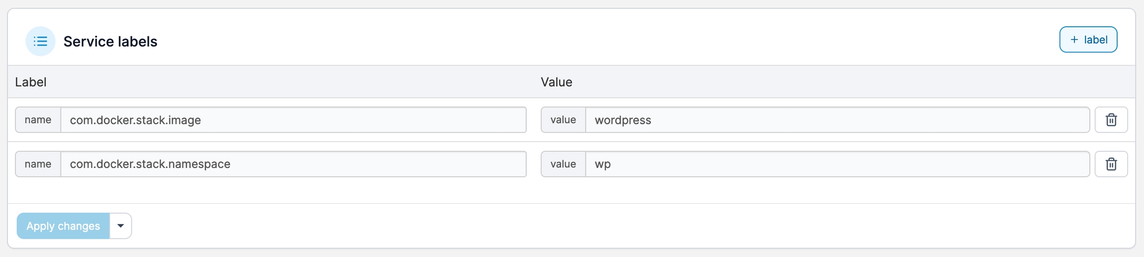 Lets you add metadata to containers using Docker labels either via an array or a dictionary. We recommend that you use reverse-DNS notation to stop labels from conflicting with those used by other software.