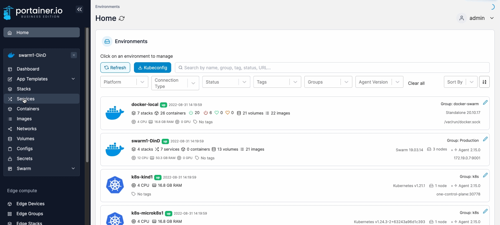 Services in a Docker Swarm environment are a collection of tasks (or individual containers). This article explains how to quickly see the status of the containers that make up each service.
