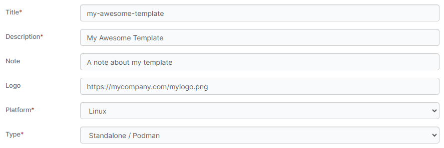 Select the type of template. Options are Standalone / Podman or Swarm.