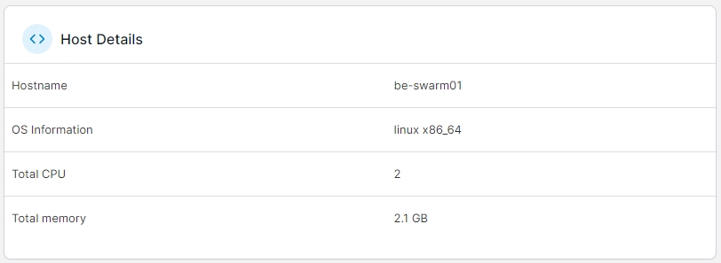 This section describes the node's basic configuration, including the hostname, OS information, and total CPU and memory.