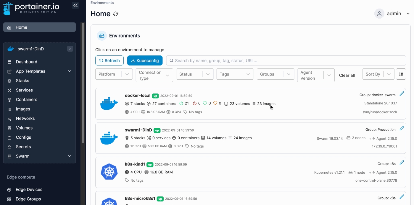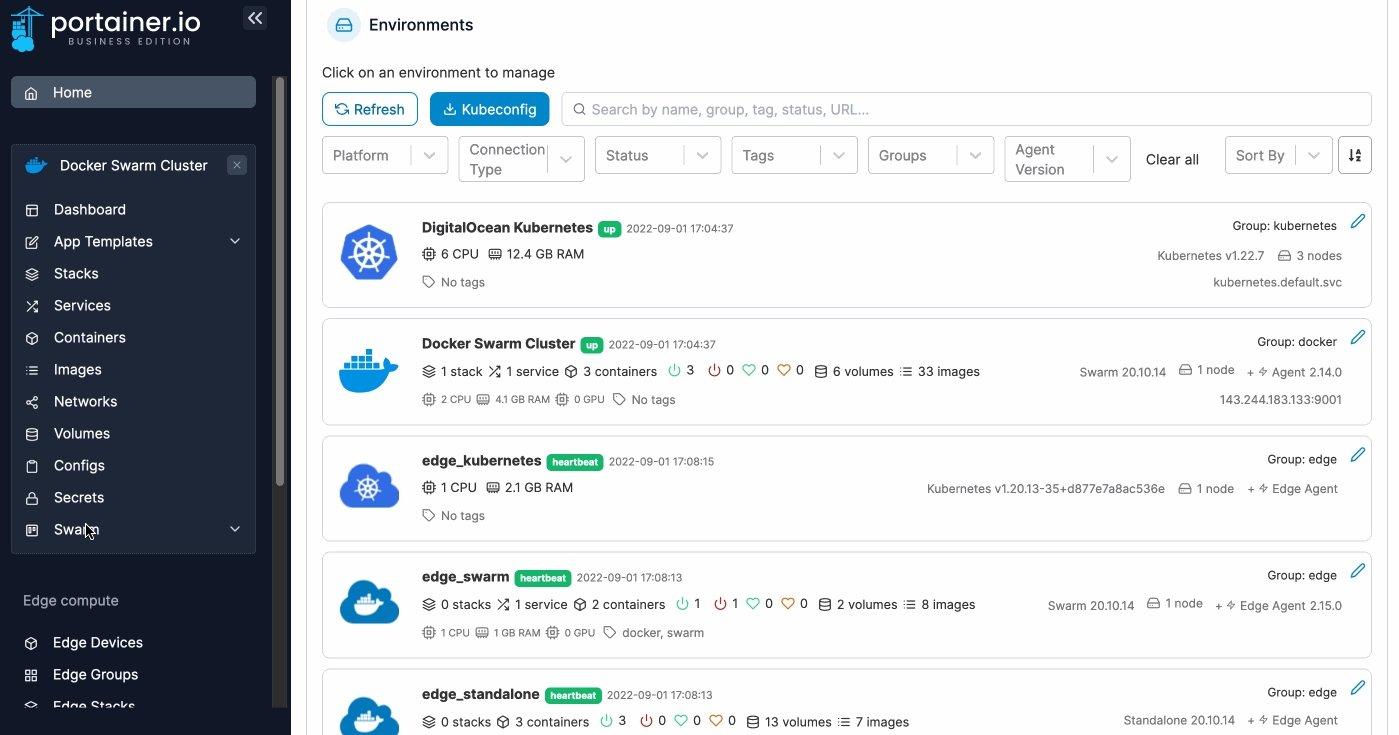 To configure access to a registry, from the menu select Swarm then select Registries.
