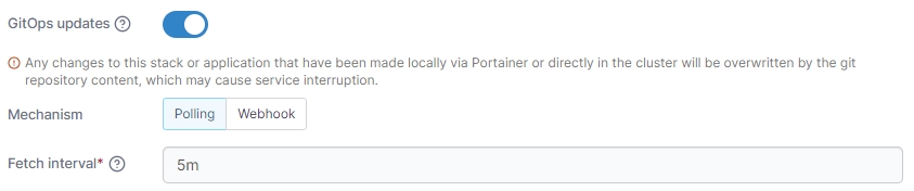 If Polling is selected, how often Portainer will check the Git repository for updates.