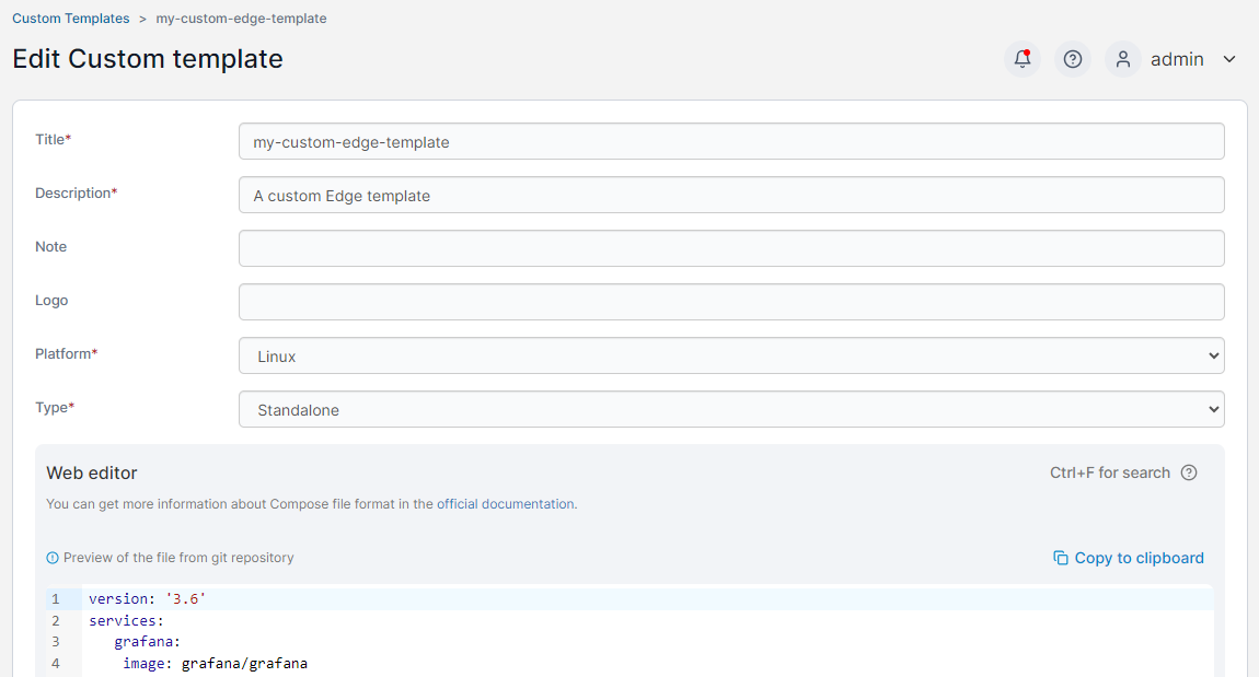 For more detail on custom template creation, refer to the [custom template](https://docs.portainer.io/sts/docker/templates/custom#creating-a-new-custom-template) documentation.