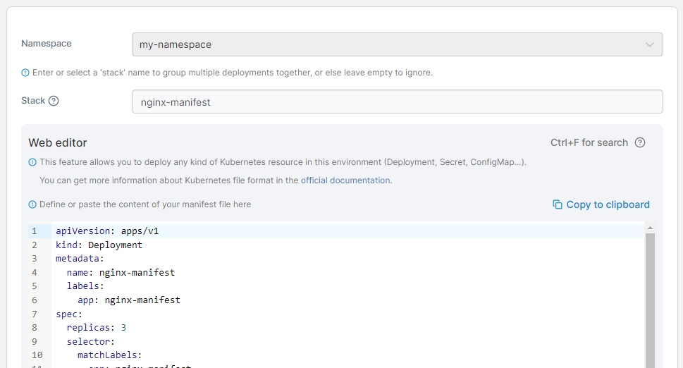 If the application was deployed from the Web Editor, you will be given the ability to edit the manifest manually.