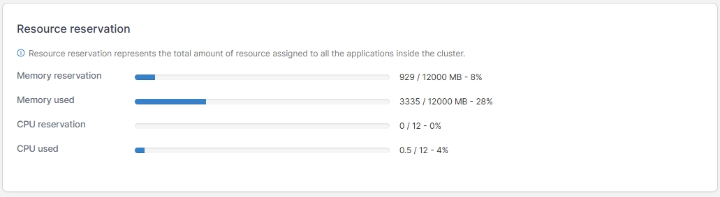 The amount of memory used by the cluster. This is only visible if you have enabled using the metrics API.