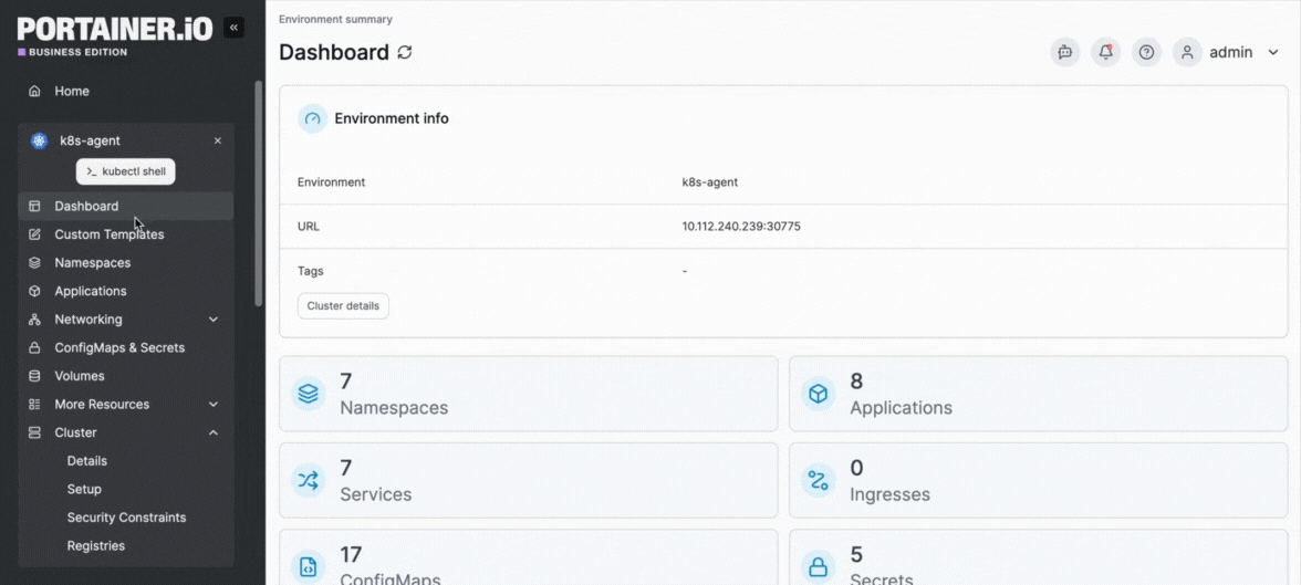 To view details of an individual node in your cluster, from the menu expand Cluster and select Details, then scroll down and click on the name of the node you want to inspect.
