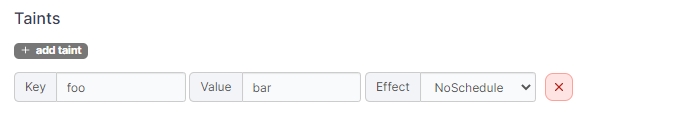 In this section you can add taints to prevent certain pods being deployed on the node.