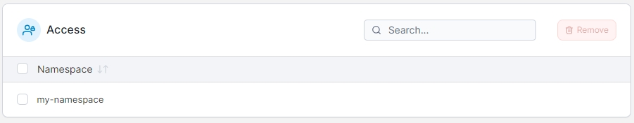 You can see a list of the namespaces that have access to the registry or remove a namespace's access to the registry in the Access section.