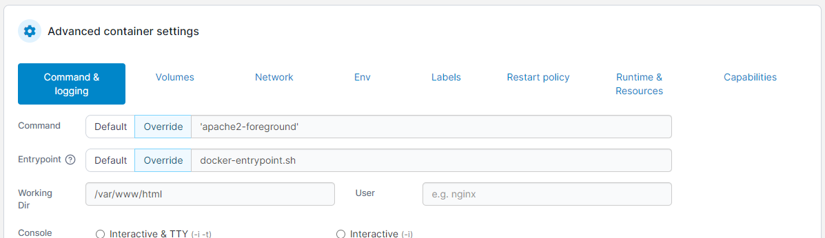 Advanced container settings
