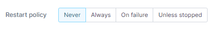 Use this section to configure the restart policy for your container. Possible options are: