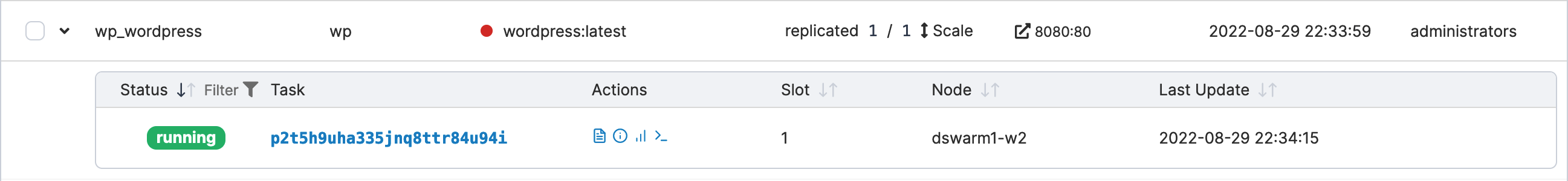Services in a Docker Swarm environment are a collection of tasks (or individual containers). This article explains how to quickly see the status of the containers that make up each service.